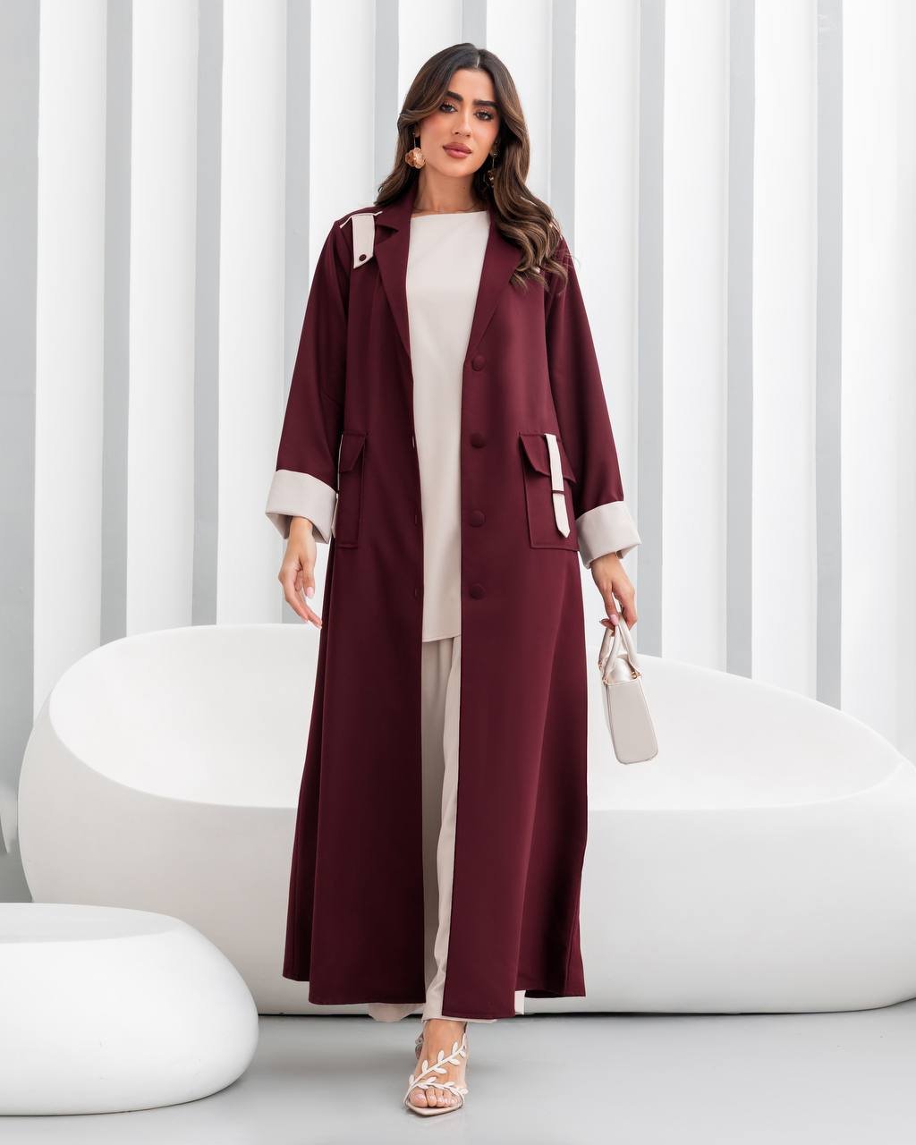 طقم من ثلاث قطع بتصميم متوازن وتباين لوني مدروس يمنح الإطلالة حضورًا أنيقًا دون مبالغة.